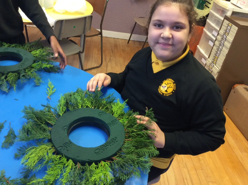 In November, Mrs Allen taught the children how to make beautiful Christmas wreaths. She brought all the foliage plus slices of real orange slow dried in her oven. She also provided cones and ribbons. We are so grateful to her for her work and wonderful teaching ability.