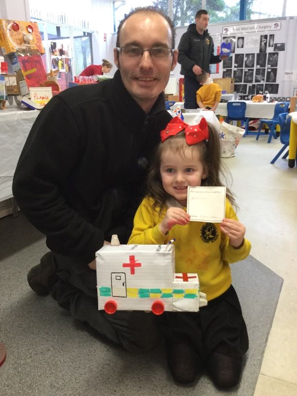 As part of our Education Work programme we enjoyed a stay and play session with the boys in our family. We worked very hard to create something from recyclable materials in connection with our topic of people who help us. Have a look at all our great work! Well done everyone 🚒 🚔 🚢 🚛